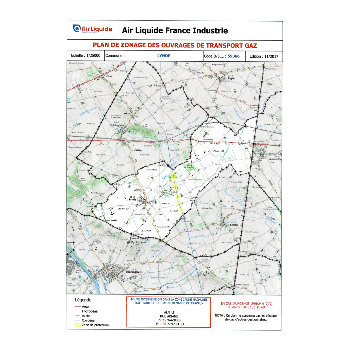 Information sur la présence de canalisation de transport de gaz industriel